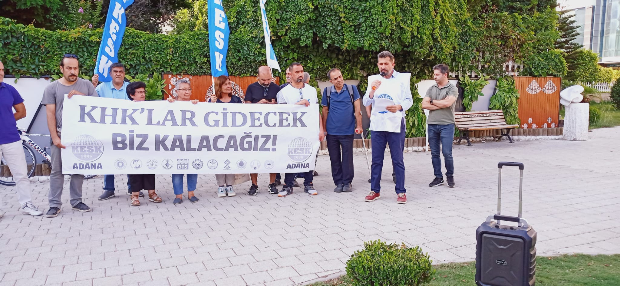 KESK Adana Şubeler Platformu, KHK’larla ilgili yaşanan ihraçları protesto etmek amacıyla Adana Heykelli Park’ta bir basın toplantısı düzenledi.