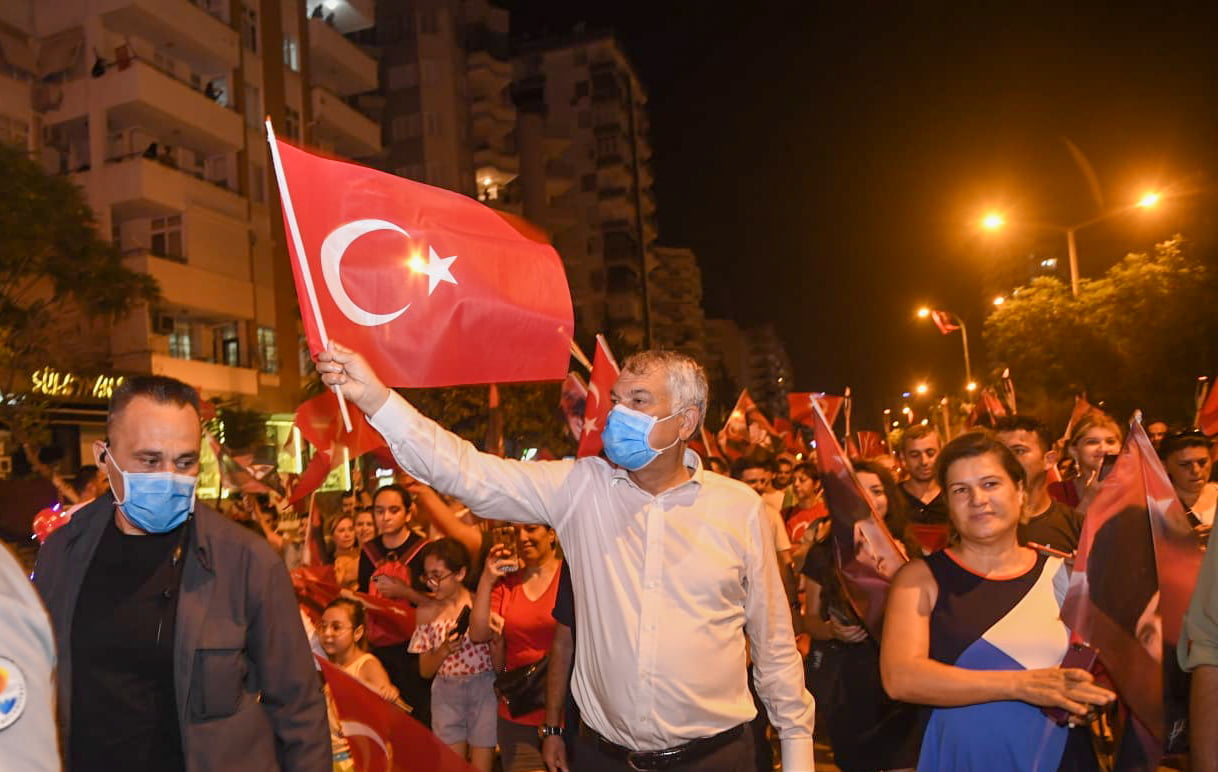 Akşam saatlerinde ise Polis Evi Kavşağı’ndan Uğur Mumcu Caddesi’ne meşalelerle yürüyen kortejde aktif bir şekilde bulundu.